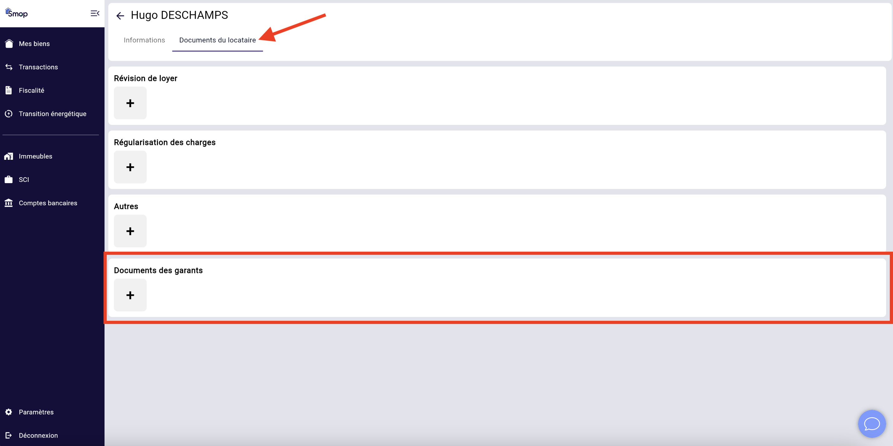Les documents du garant sont se trouvent au même endroit que les documents liés au locataire. Pour accéder aux documents d’un garant, suivez ces étapes :
